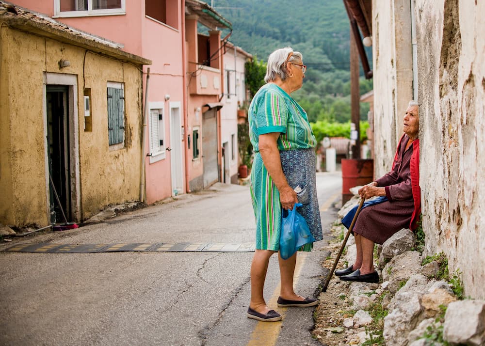 Warm Encounters: Feel the charm of Corfu as locals gather in narrow cobblestone streets, sharing stories and creating a welcoming atmosphere.